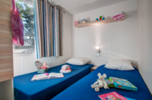 Dans la disposition, le Détour donne le meilleur : une chambre parentale avec un lit double, la deuxième chambre qui possède deux lits jumeaux et un séjour transformable avec un vrai lit tiroir de 120x190cm (1 couverture/lit – Draps non fournis).