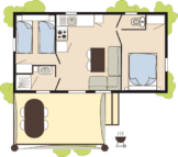 Les + de cet hébergement : mobil home récent, quartier paysagé, espace pour lit bébé dans la chambre parentale dans la configuration n°1, climatisation, isolation renforcée, deux vélos pour adulte, dont un équipé d’un siège enfant.